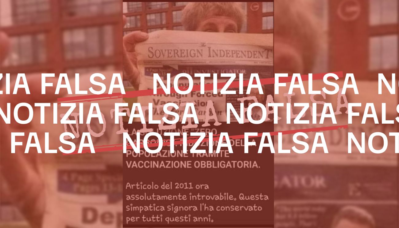 Il 7 gennaio 2022 la redazione di Facta ha ricevuto una segnalazione via WhatsApp che chiedeva di verificare le informazioni contenute in uno screenshot, che mostra una donna che espone un titolo del quotidiano Sovereign Independent in cui si legge: “Riduzione della popolazione attraverso la vaccinazione obbligatoria: la soluzione a zero emissioni di carbonio”. Il titolo è accompagnato da una foto di Bill Gates, imprenditore e filantropo statunitense da sempre in prima linea nelle campagne pro-vaccinazione, e per questo motivo finito al centro di numerose teorie del complotto.