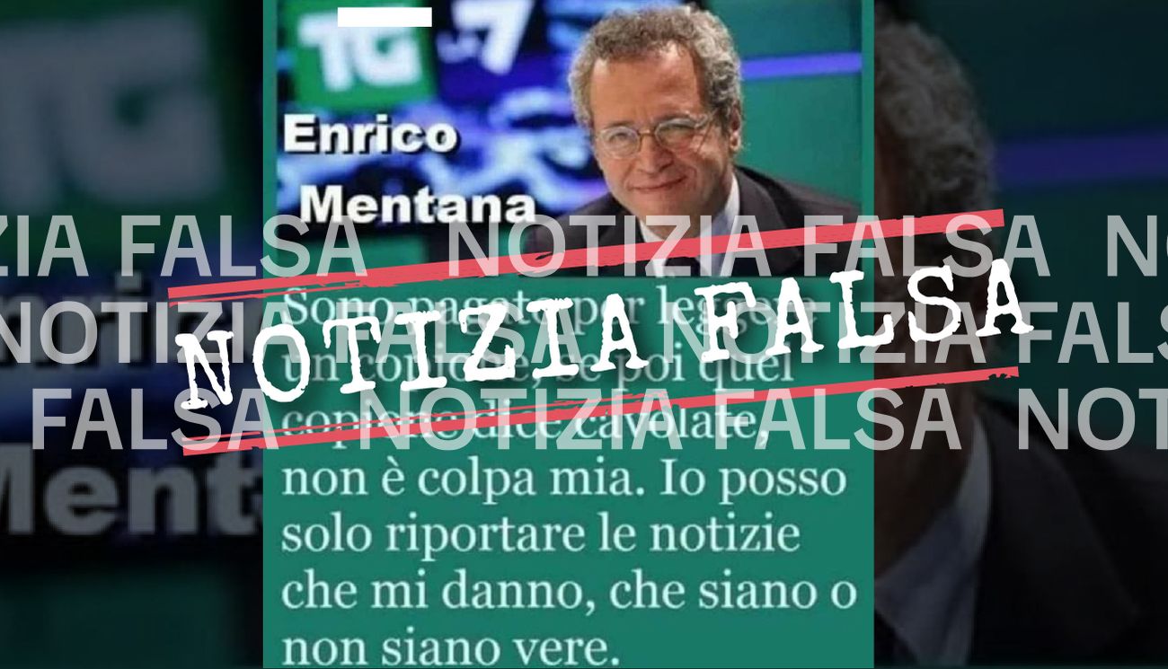 Il 31 agosto 2020 su Facebook è stata pubblicata un’immagine che mostra una foto del giornalista Enrico Mentana e riporta una sua presunta dichiarazione. Si legge: «Bisogna nascondere gli sbarchi e i crimini dei migranti, per rendere meno grave il problema».