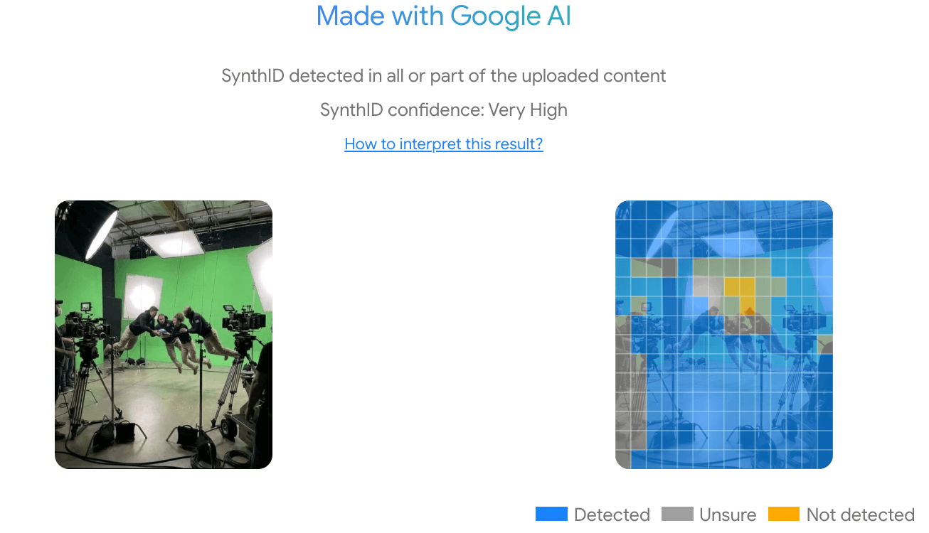 Nell’immagine sono presenti alcune incongruenze tipiche dei contenuti realizzati con l’IA: ad esempio, la mano del tecnico alla sinistra dell’equipaggio non risulta essere definita in maniera realistica. Un’analisi effettuata con SynthID Detector, strumento Google per identificare i contenuti IA, ha confermato che l’immagine in questione è stata creata artificialmente.