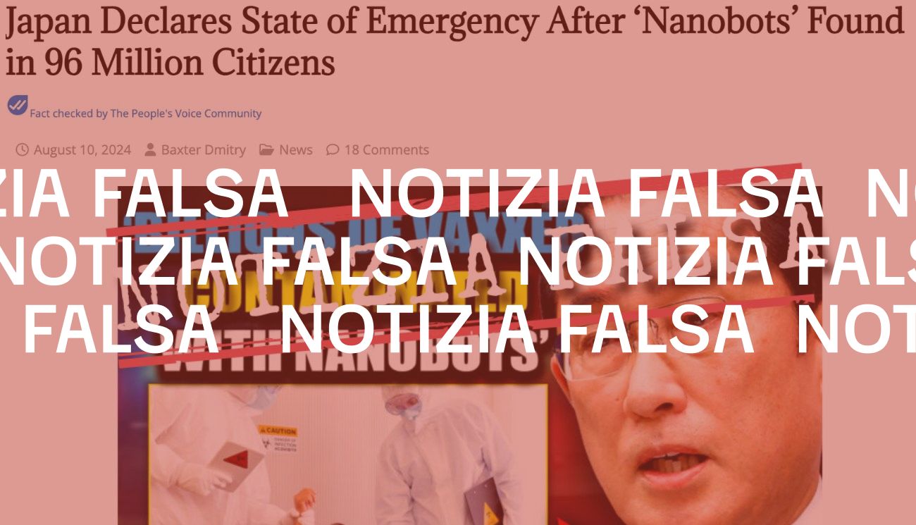 - Il Giappone non ha dichiarato lo stato di emergenza per aver trovato dei nanobot nelle persone vaccinateIl Giappone non ha dichiarato lo stato di emergenza per aver trovato dei nanobot nelle persone vaccinate