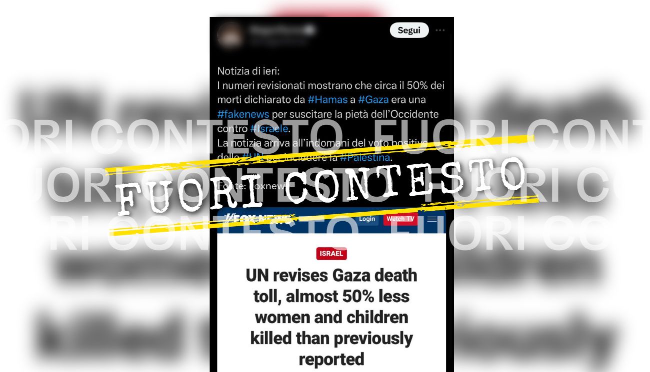 Il 12 novembre 2024 è stato pubblicato un post su Facebook per cui un rapporto delle Nazioni Unite avrebbe accertato 8.119 vittime a Gaza, e non «40mila». Questo significherebbe una conferma da parte dell’ONU «che i numeri di Hamas erano pura propaganda».