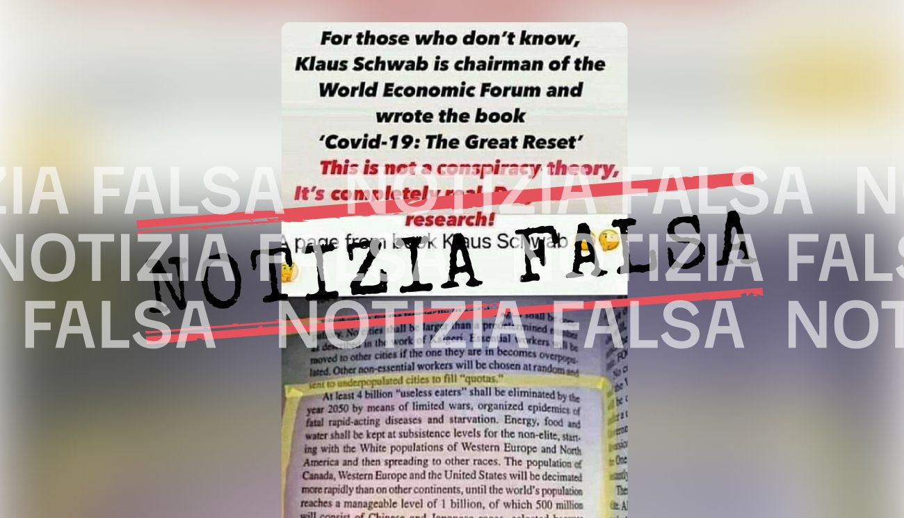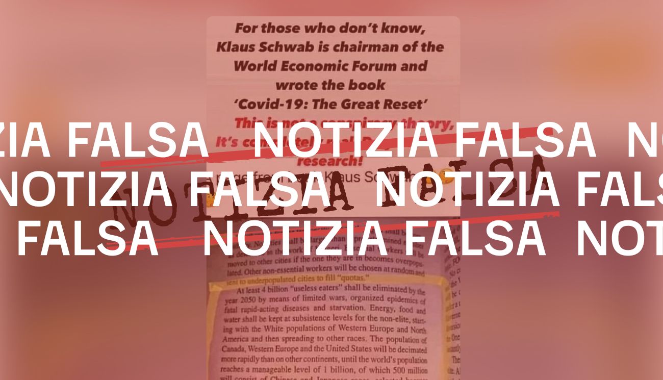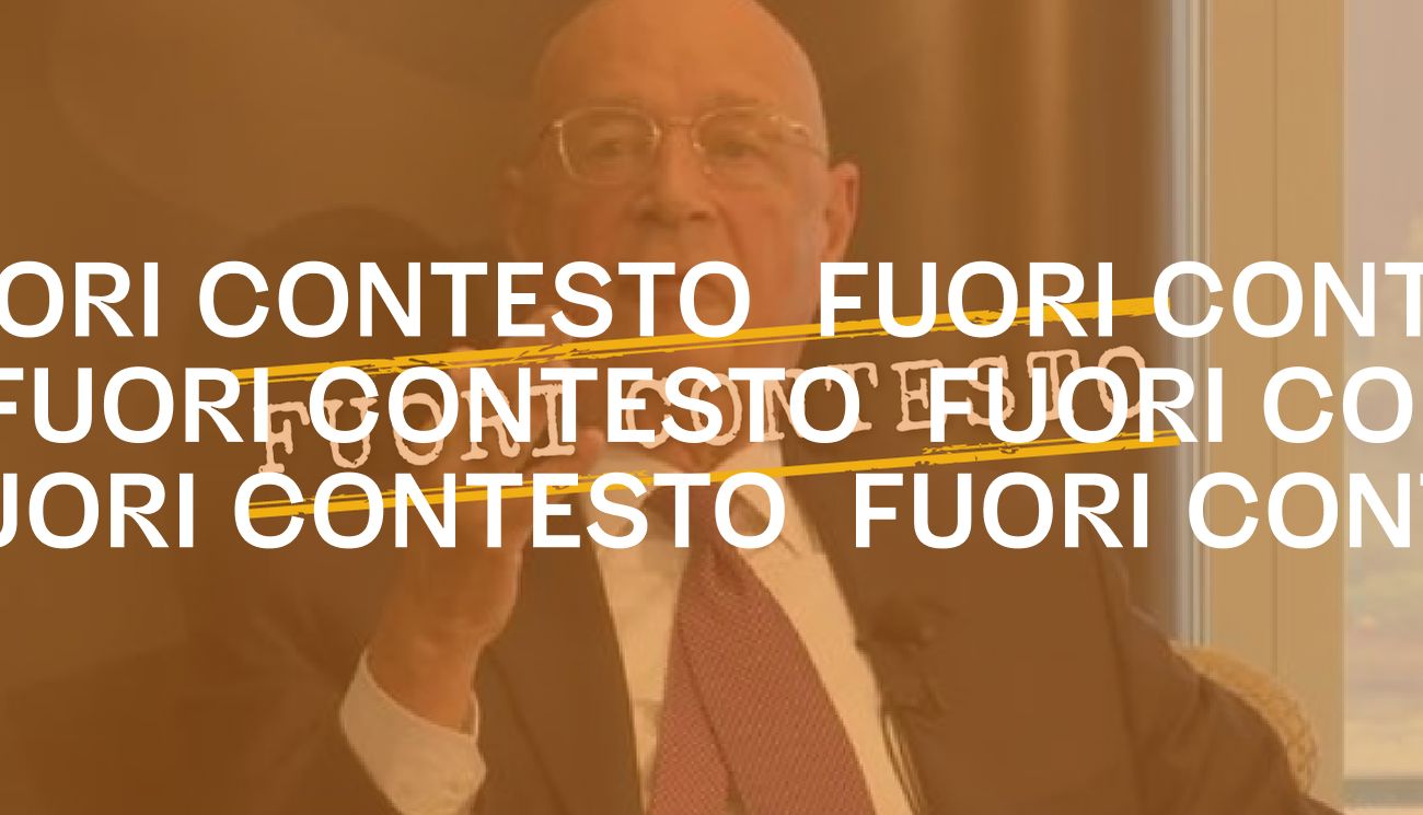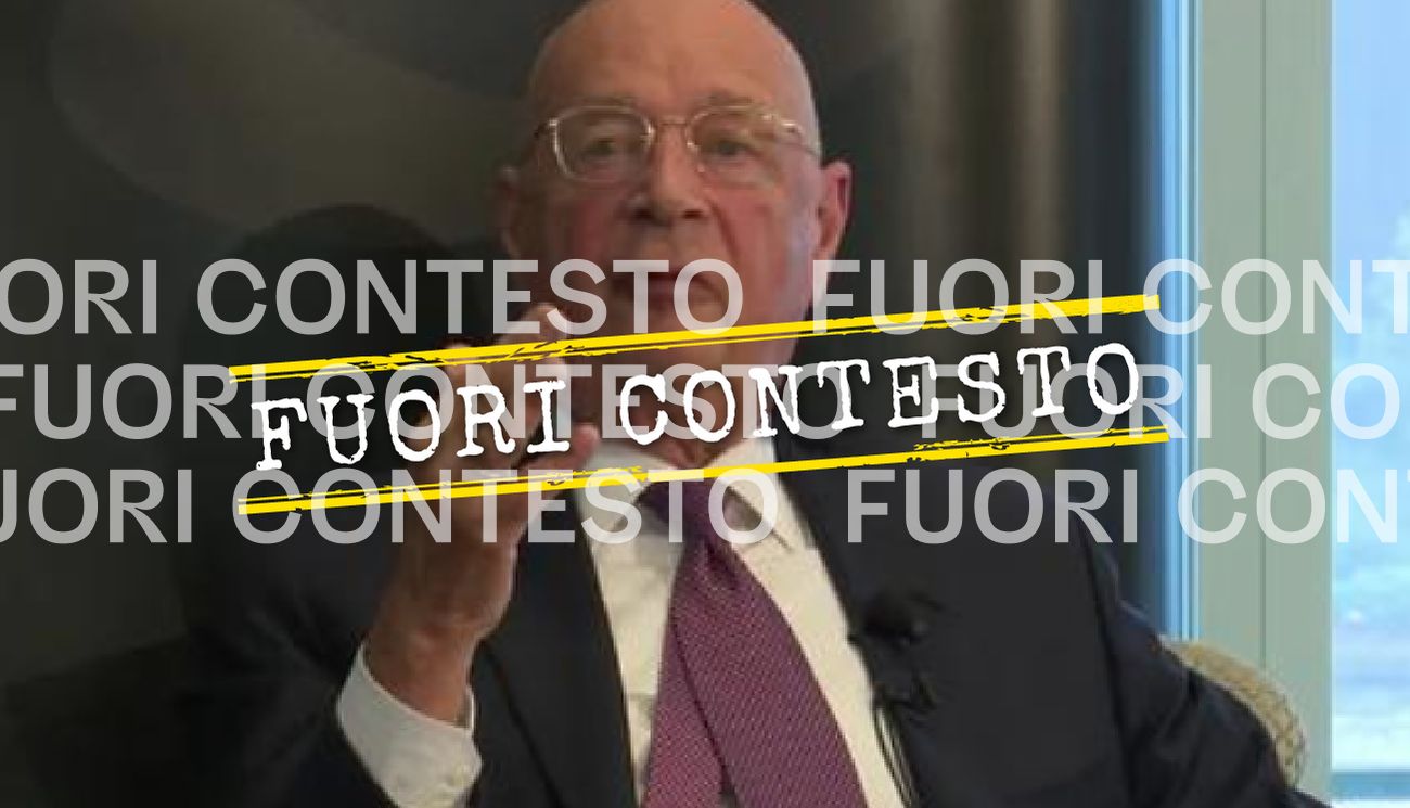 Il 13 gennaio 2024 è stato pubblicato su Instagram un video che mostra lo spezzone di una dichiarazione in inglese di Klaus Schwab, fondatore e presidente del World Economic Forum (WEF). Nel filmato è presente un testo in sovrimpressione in italiano in cui si legge che Schwab avrebbe ammesso «che stiamo assistendo a una rivoluzione politica contro i suoi piani del Grande Reset.».