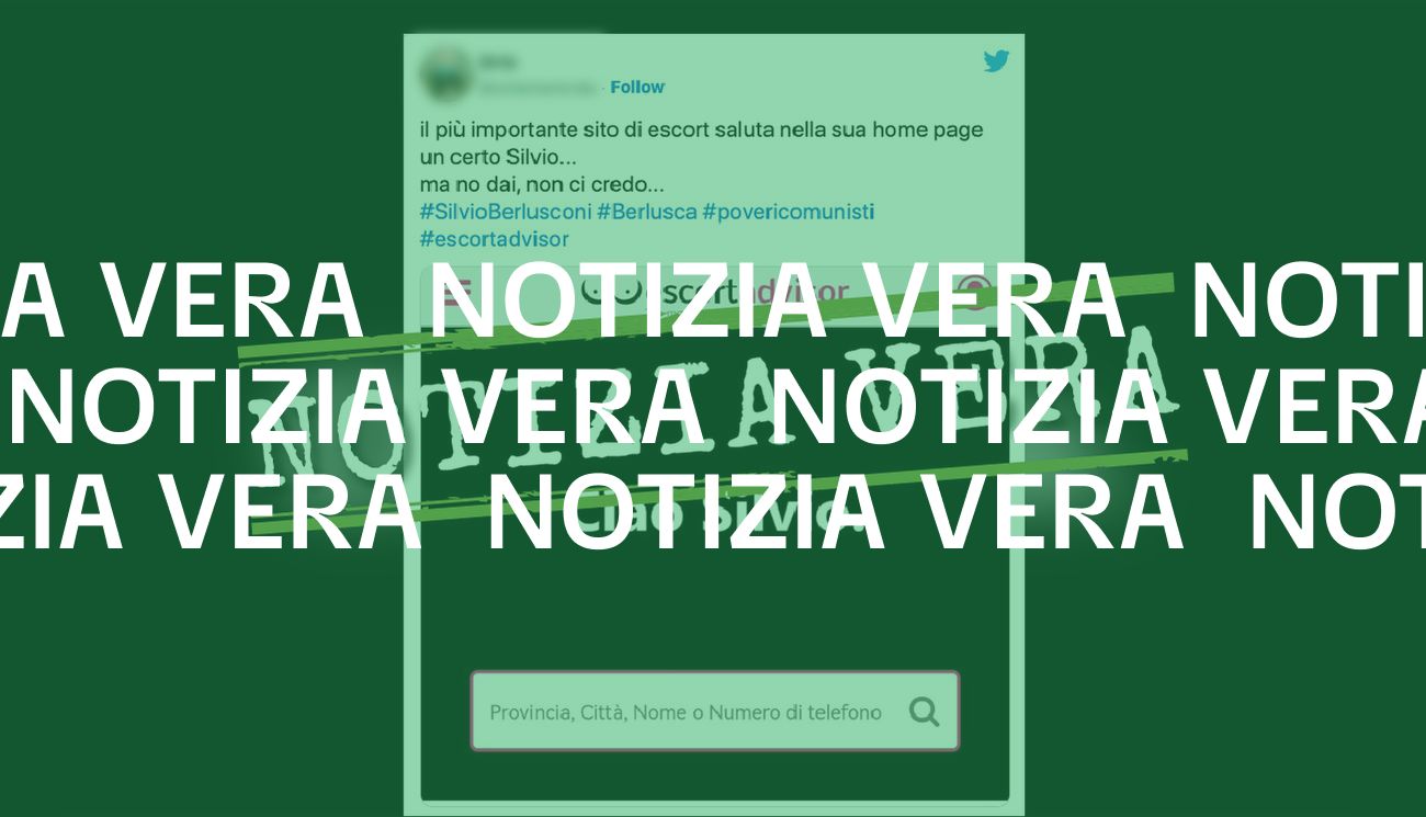 Il 13 giugno 2023 la redazione di Facta.news ha ricevuto una segnalazione via WhatsApp che chiedeva di verificare l’autenticità di un’immagine, circolata su Twitter e TikTok, che mostra il messaggio «Ciao Silvio» pubblicato sulla homepage del sito Escort Advisor.