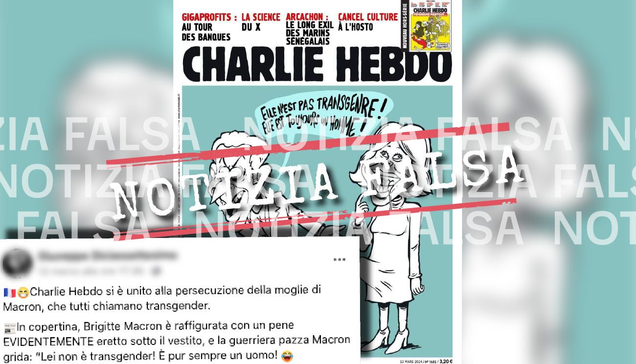 Charlie Hebdo non ha pubblicato questa copertina transfobica su Macron e sua moglie