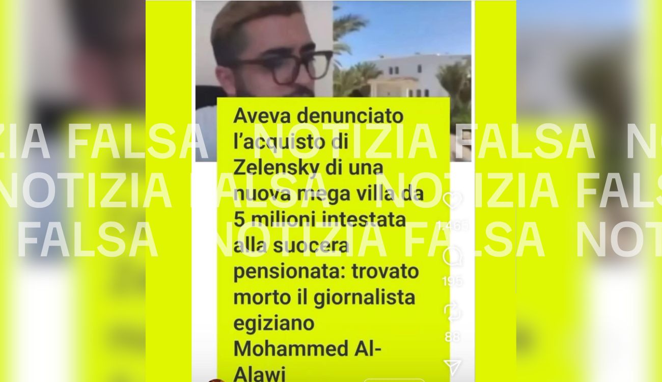 La notizia del giornalista egiziano ucciso per un’inchiesta su Zelensky è falsa