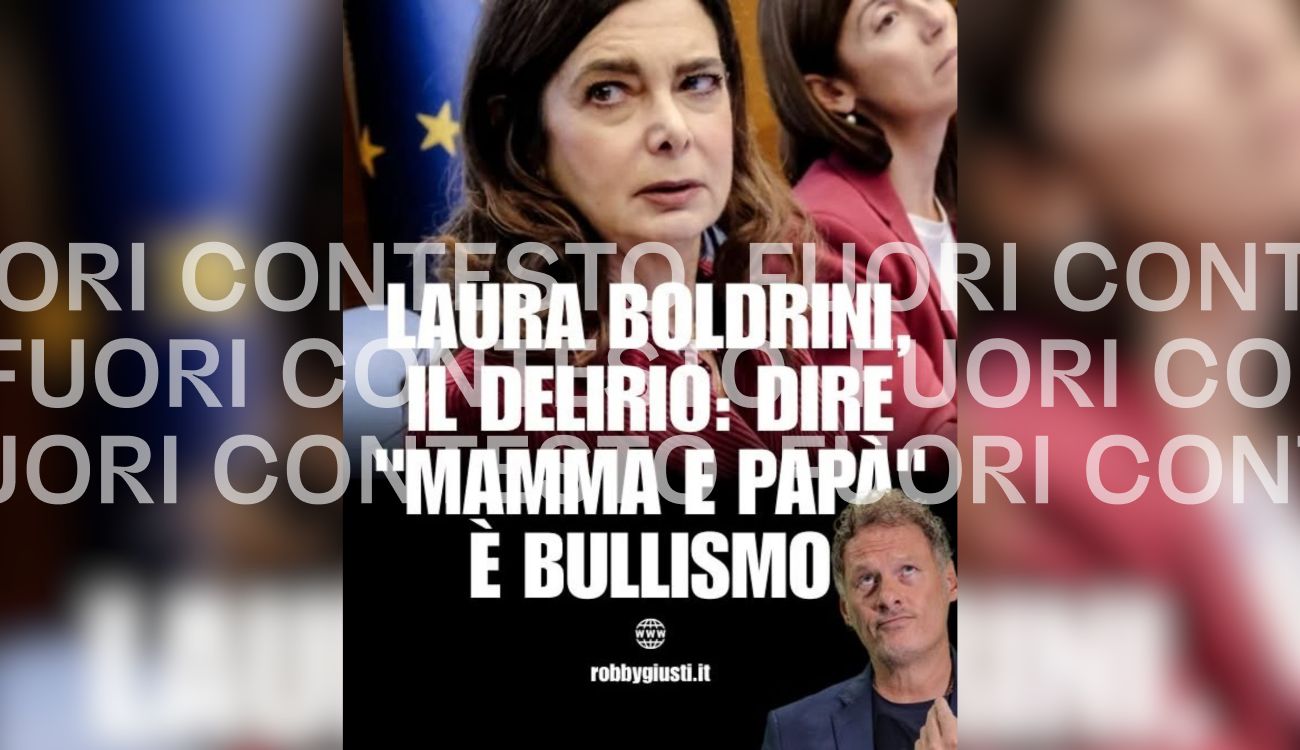 Laura Boldrini non ha detto che «dire “mamma e papà” è bullismo»