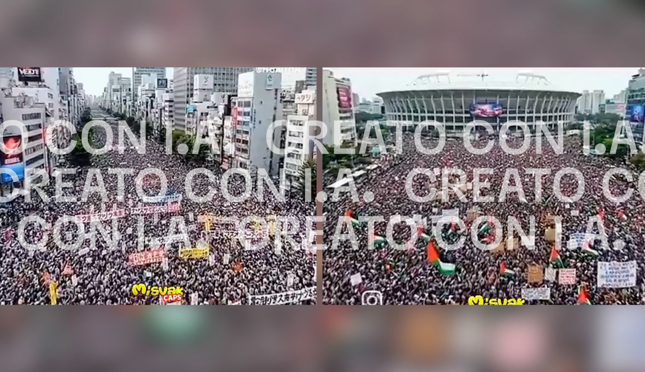 Queste clip di un’«imponente manifestazione» giapponese pro Palestina non contengono scene reali