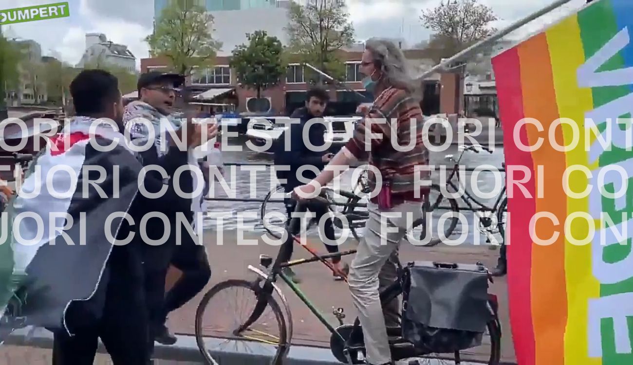 Questi manifestanti proPal non dicono «siamo musulmani e tu ci fai schifo» al ciclista con la «bandiera arcobaleno»