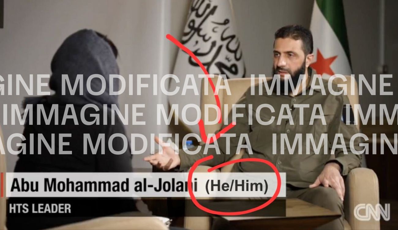 No, la CNN non ha inserito i pronomi «He/Him» nell’intervista al leader dei ribelli siriani