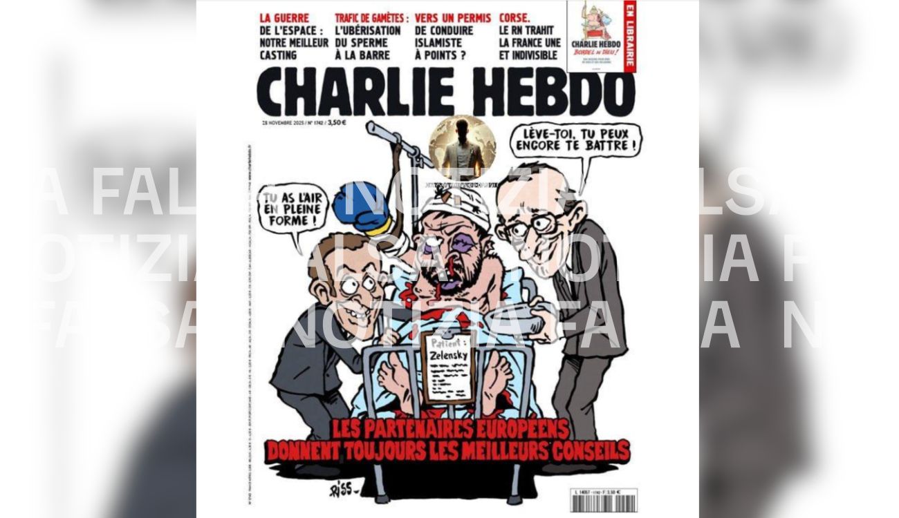 No, Charlie Hebdo non ha pubblicato una vignetta di Zelensky in ospedale incitato dai suoi alleati a combattere