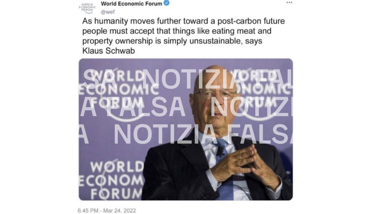 Il WEF non ha mai detto che nel futuro sarà insostenibile mangiare carne e possedere una casa
