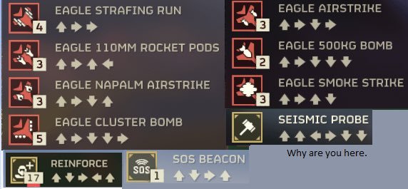 È un riferimento al videogame sparatutto dall’alto Helldivers 2 e riporta la sequenza dei comandi che servono a sganciare una bomba Eagle da 500 chilogrammi, una delle armi più potenti del gioco . Il “Catch”, ovvero “prendi questa” si riferisce naturalmente alla bomba, metaforicamente rappresentata dal proiettile.