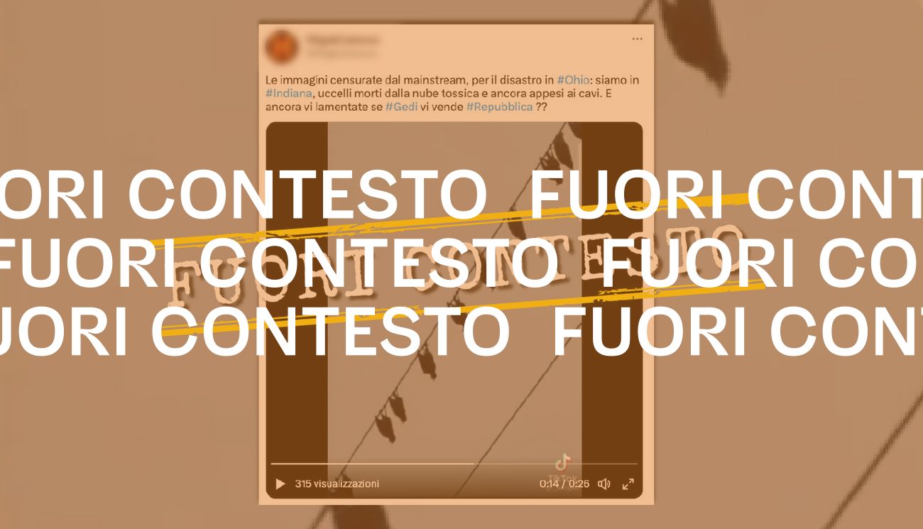 In relazione alla paura che si è diffusa dopo la morte di alcuni pesci nei corsi d’acqua adiacenti al disastro, hanno iniziato a circolare anche dei filmati che mostrano la morte improvvisa di vari animali. Ad esempio un video che mostra uccelli morti la cui causa è stata collegata al deragliamento. Si tratta, invece, di un filmato pubblicato su TikTok nel gennaio 2023, quindi due settimane prima dell’incidente, e girato nello stato dell’Indiana, a più di 300 chilometri di distanza dal treno deragliato.