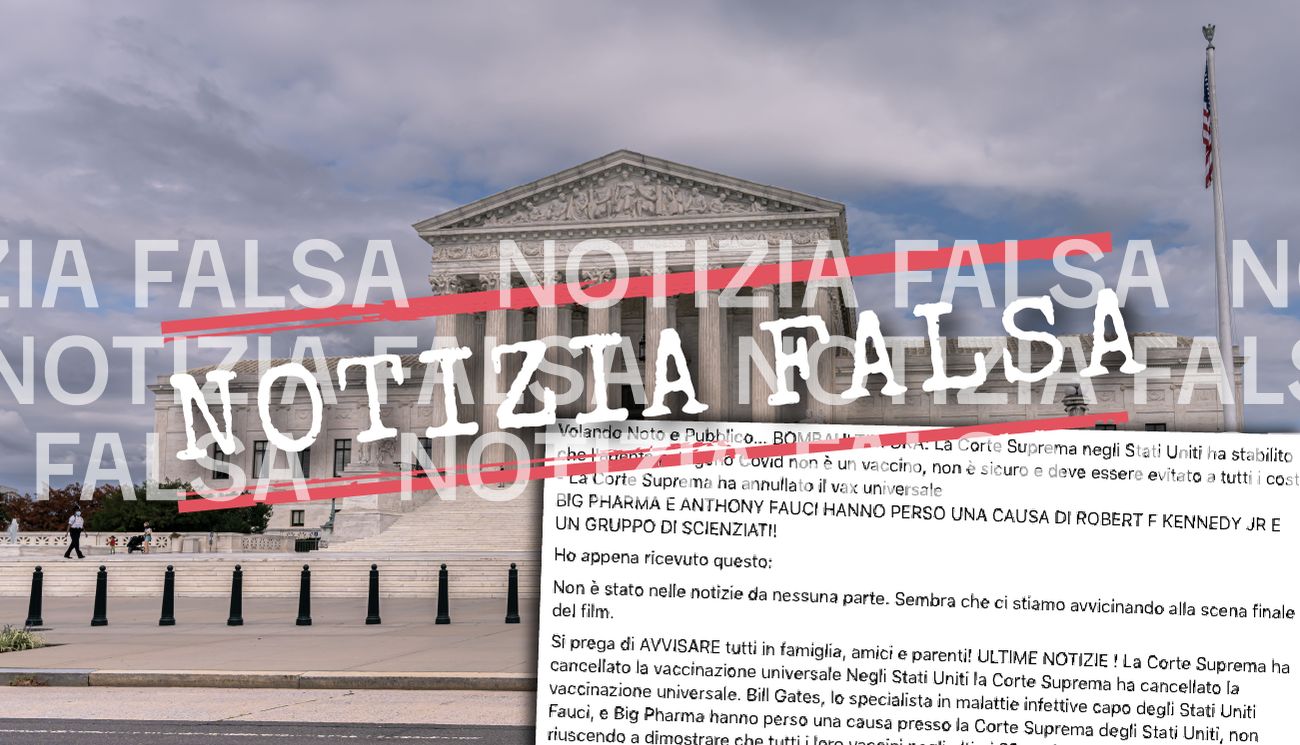 Il 29 marzo 2021 su Facebook è stato pubblicato un post in cui si legge che Bill Gates, co-fondatore di Microsoft e filantropo, Anthony Fauci, direttore del National Institute of Allergy and Infectious Disease (l’istituto americano che si occupa di allergie e malattie infettive) e le industrie farmaceutiche avrebbero perso una causa davanti alla Corte Suprema degli Stati Uniti perché «non sono stati in grado di dimostrare che tutti i loro vaccini negli ultimi 32 anni erano sicuri per la salute pubblica!». Secondo il contenuto oggetto di verifica, i giudici statunitensi avrebbero annullato «la vaccinazione universale». Viene poi affermato che i vaccini a mRna contro il nuovo coronavirus Sars-CoV-2 sarebbero in grado di modificare il sistema genetico delle persone.