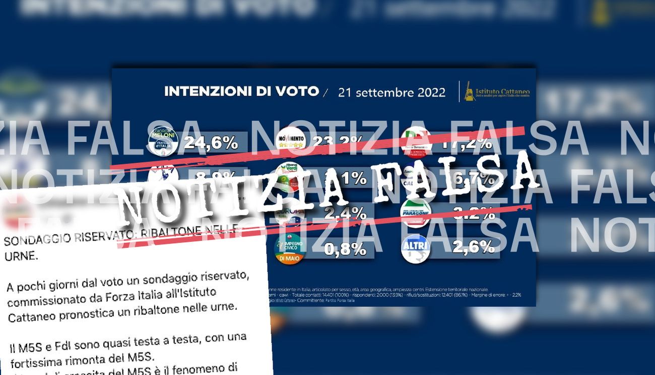 Il 24 maggio 2021 su Facebook è stata pubblicata un’immagine e si legge «i sondaggi segreti che fanno tremare i poveri forti». Stando al sondaggio riportato, alle prossime elezioni politiche la Lega prenderebbe il 5 per cento dei voti, il Movimento 5 stelle guidato dall’ex presidente del Consiglio Giuseppe Conte il 53 per cento, il Partito democratico il 20 per cento, Forza Italia più Italia Viva l’1 per cento, mentre Fratelli d’Italia il 25 cento.