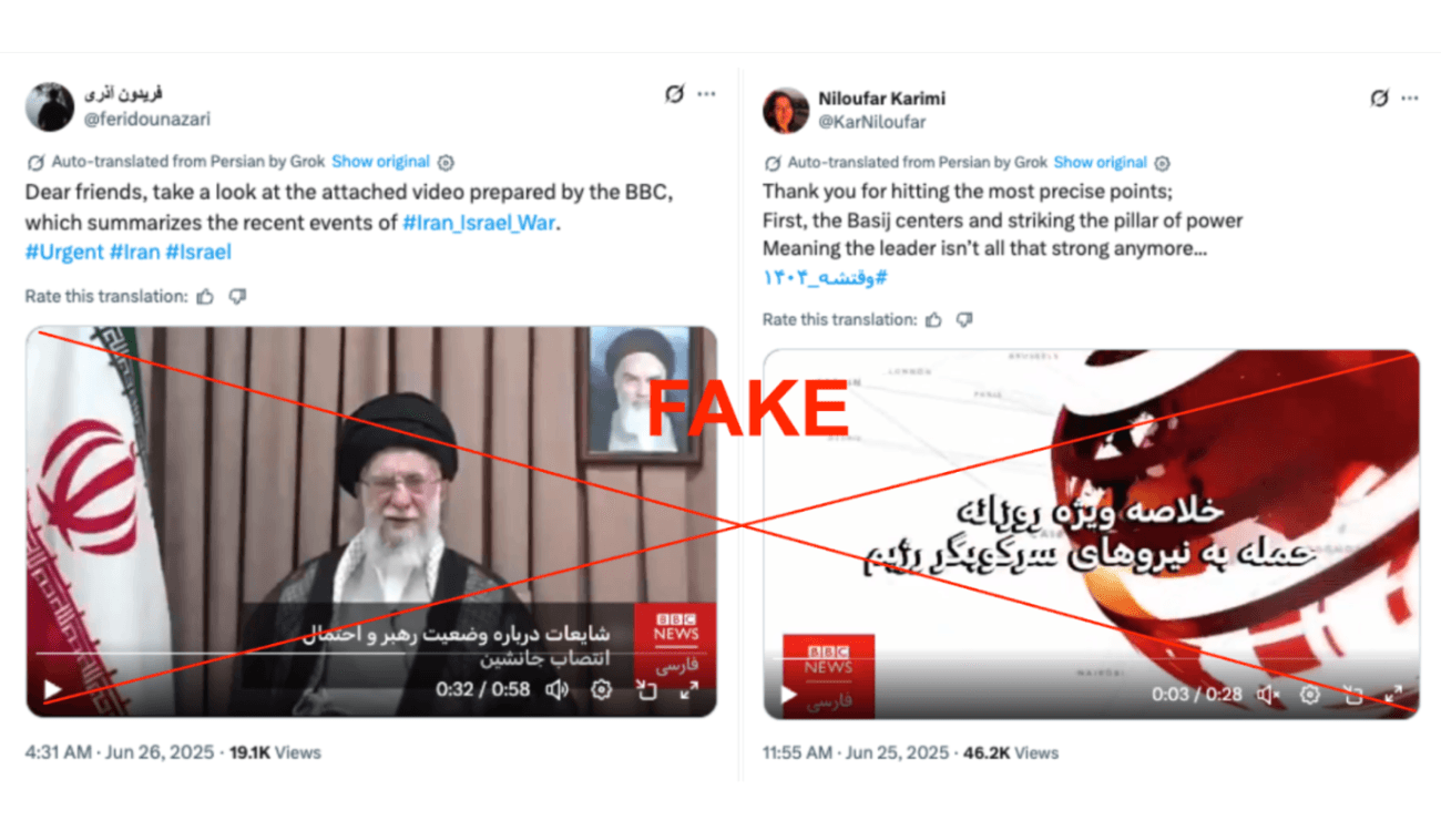 La rete ha diffuso anche false notizie attribuendole a media reali. Ad esempio, sono stati pubblicati screenshot o video che riproducevano alcuni presunti contenuti della BBC Persian, canale televisivo britannico che trasmette in persiano. In uno di questi veniva riportato un articolo intitolato, in italiano, “Funzionari in fuga dal Paese; alti funzionari lasciano l’Iran uno dopo l’altro”. La BBC Persian ha smentito di aver mai pubblicato quei contenuti. Questa tecnica disinformativa è stata utilizzata anche dalle operazioni di disinformazione filorussa, con la diffusione di servizi video o articoli attribuiti a diversi media occidentali in cui venivano condivise notizie inventate che puntavano a screditare l’Ucraina o i governi ritenuti nemici dal Cremlino. La rete “PrisonBreak” ha anche utilizzato video modificati o condivisi in maniera fuorviante per veicolare false informazioni sulle proteste in Iran. In diversi casi questi profili hanno condiviso video suggerendo di averli girati nel proprio quartiere, quando invece, tramite una verifica successiva, i ricercatori hanno scoperto che erano contenuti riciclati e utilizzati in maniera ingannevole per dare credibilità alle pubblicazioni dell’operazione.