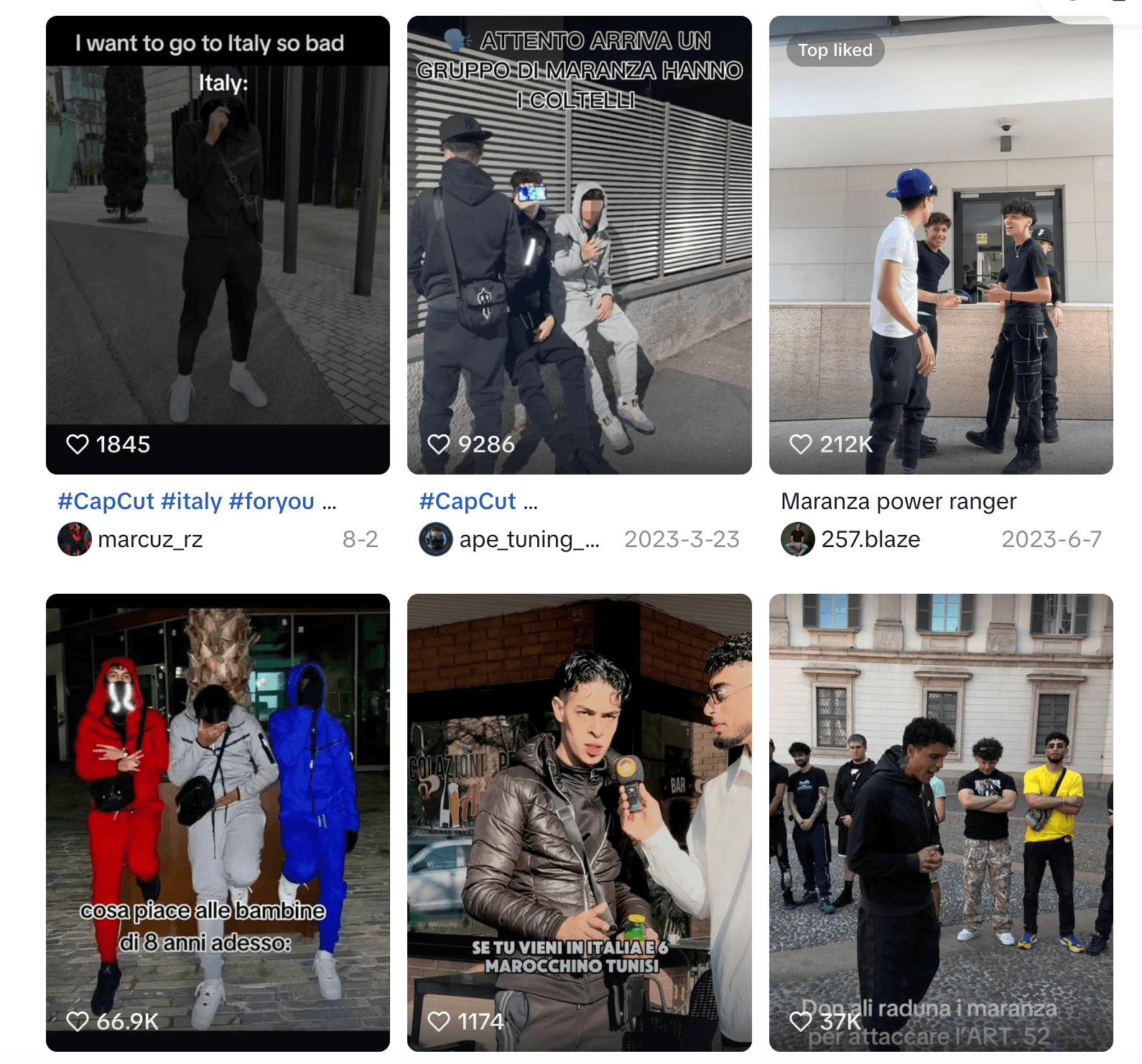 Più che essere un problema urgente e concreto per la sicurezza, in realtà, il “maranza” sembra essere a tutti gli effetti un’estetica, con tute Adidas, scarpe Nike TN e borsello Gucci. Se si cerca la parola “maranza” su TikTok, ad esempio, appaiono moltissime immagini di ragazzi vestiti con tute Adidas o Lacoste, che rivendicano le loro origini non italiane e ostentano l’atteggiamento strafottente tipico del “tamarro/coatto”. Alcuni di loro fanno riferimento anche ad azioni tipiche della criminalità, mentre altri ironizzano sul fatto di essere chiamati maranza «solo perché indossano le TN».
