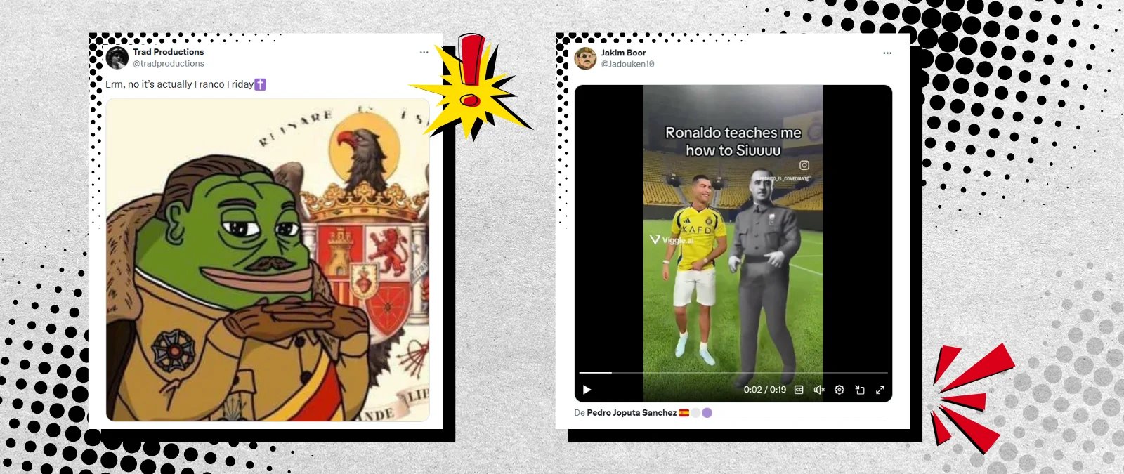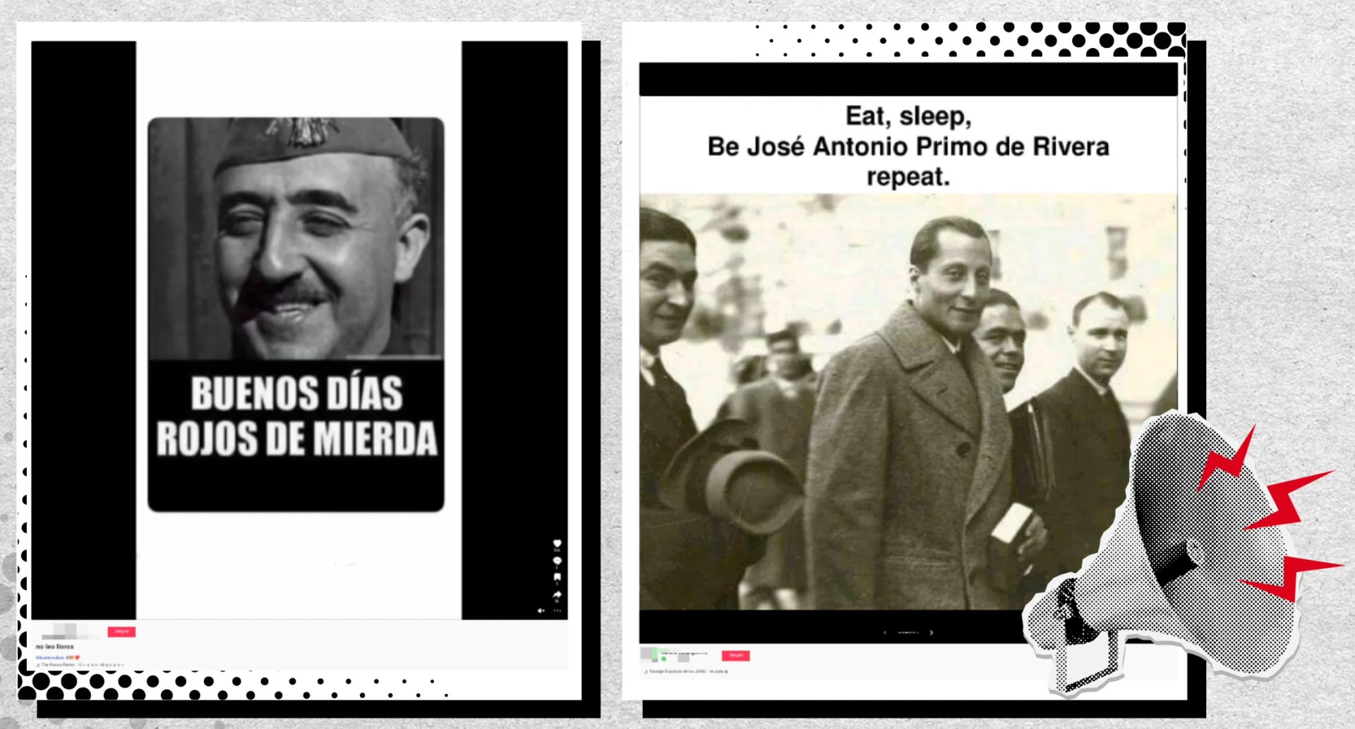 These contents are distributed across multiple platforms, although they are adapted to the specific characteristics of each one. While TikTok is full of videos with background music such as Cara al Sol or speeches by Primo de Rivera accompanying images or video clips, on the X network, more content is published in the form of memes or references to Franco Fridays or football, for example.