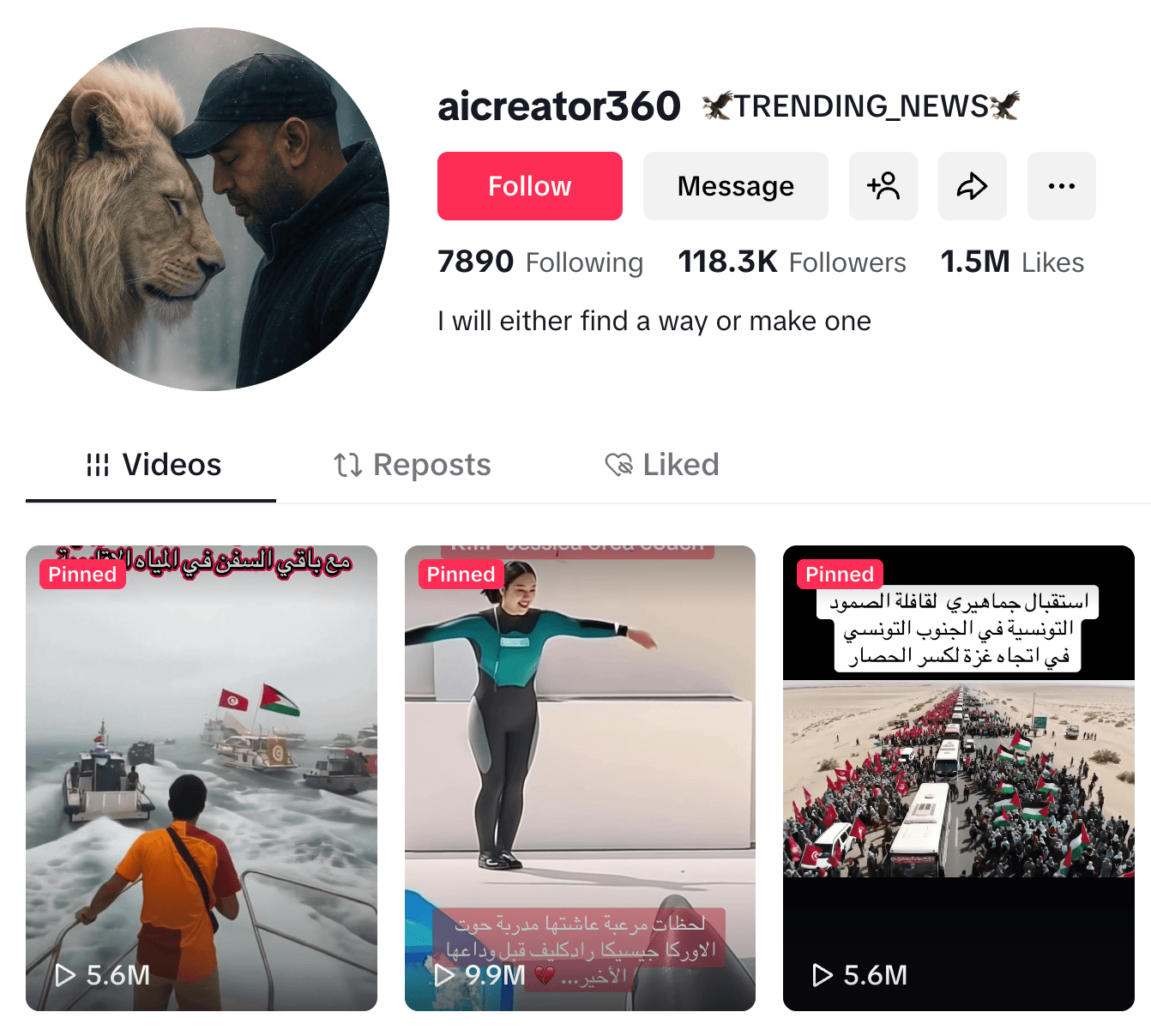 Un’altra strategia sempre valida per verificare un contenuto è quella di cercarne la fonte, ossia il primo momento in cui è stato diffuso. Spesso i profili che hanno per primo condiviso il contenuto dichiarano apertamente, attraverso la biografia, il nome dell’account o nella didascalia, che utilizzano i modelli IA per creare le immagini e i video che distribuiscono.