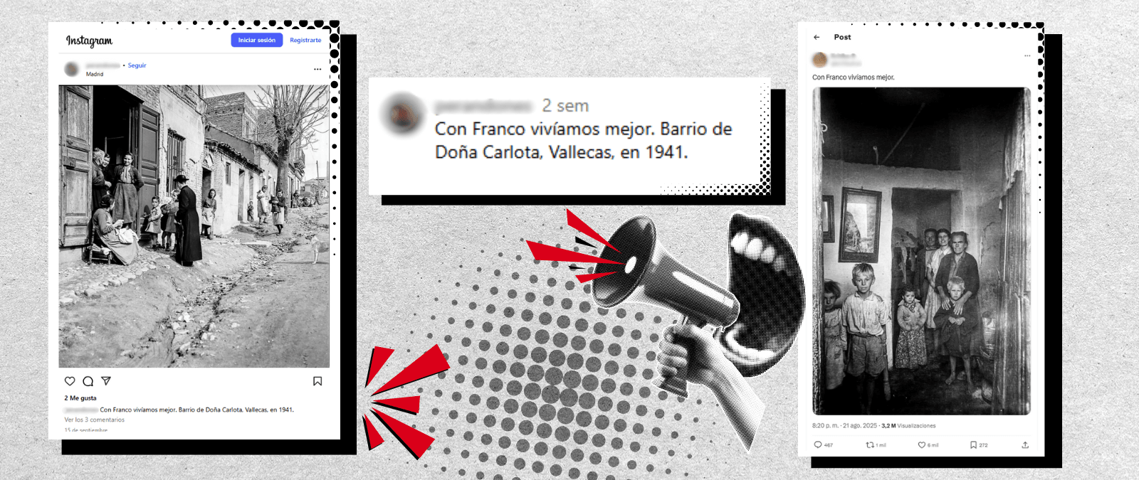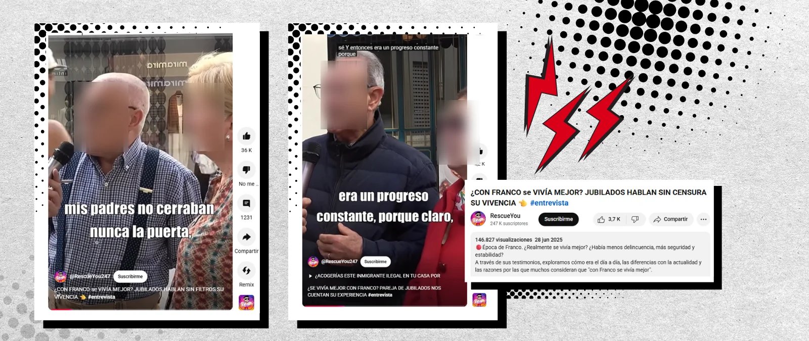 “We used to live better under Franco” or “When he (Mussolini) was around, things were better” are the most commonly used narratives about Franco, Mussolini and their dictatorship, according to the content analyzed by Maldita.es and Facta. This discourse, which presents both regimes as a time of greater security, material well-being, and stability compared to the current democratic era, circulates widely on social media. To convey this narrative, the content relies on a series of elements such as disinformation content, appealing to the experiences of older people, the recurrent use of direct comparisons with the present, the introduction of numerical data without any context as evidence of credibility, and the use of memes that condense the message. Although sometimes adopts an ironic or humorous tone, this narrative could have a real impact by framing these dictatorships as times of order, prosperity and security, it fuels nostalgia for authoritarian regimes and casts doubt on democracy today.