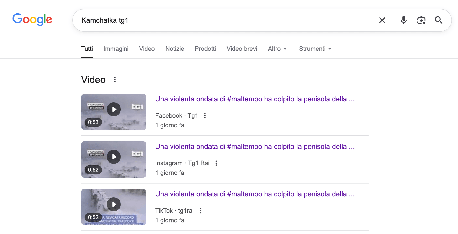 Lo scorso 19 gennaio, nel riportare la notizia di una grande nevicata in Russia, il TG1 ha pubblicato sui propri account social filmati generati con l’intelligenza artificiale presentandoli come delle vere testimonianze dell’evento meteorologico.