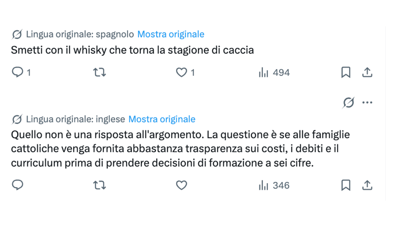 In questo nuovo X “globale”, quindi, gli utenti sembrano essere più esposti a contenuti che altrimenti non avrebbero mai visto prima dell’arrivo della traduzione automatica. Un elemento che pone dei seri rischi dal punto di vista della disinformazione: adesso, infatti, i contenuti ottengono visibilità a prescindere dalla lingua usata dall’utente, facendo sì che qualsiasi post, anche quelli contenenti notizie false e fuorvianti o di propaganda, superi i confini linguistici.